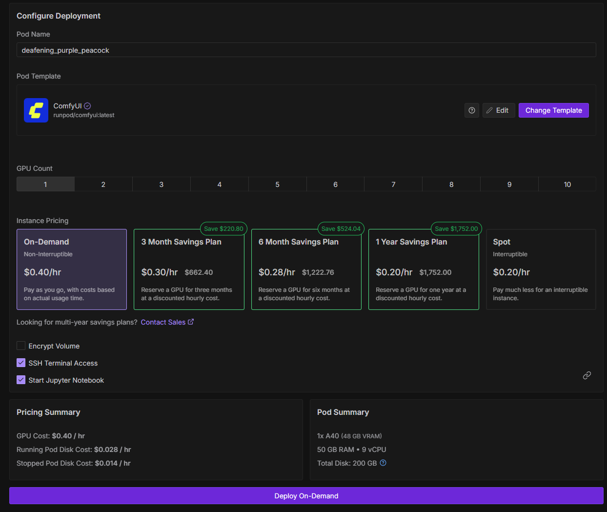 - Click "Deploy Pod": Press the deploy button on your chosen template