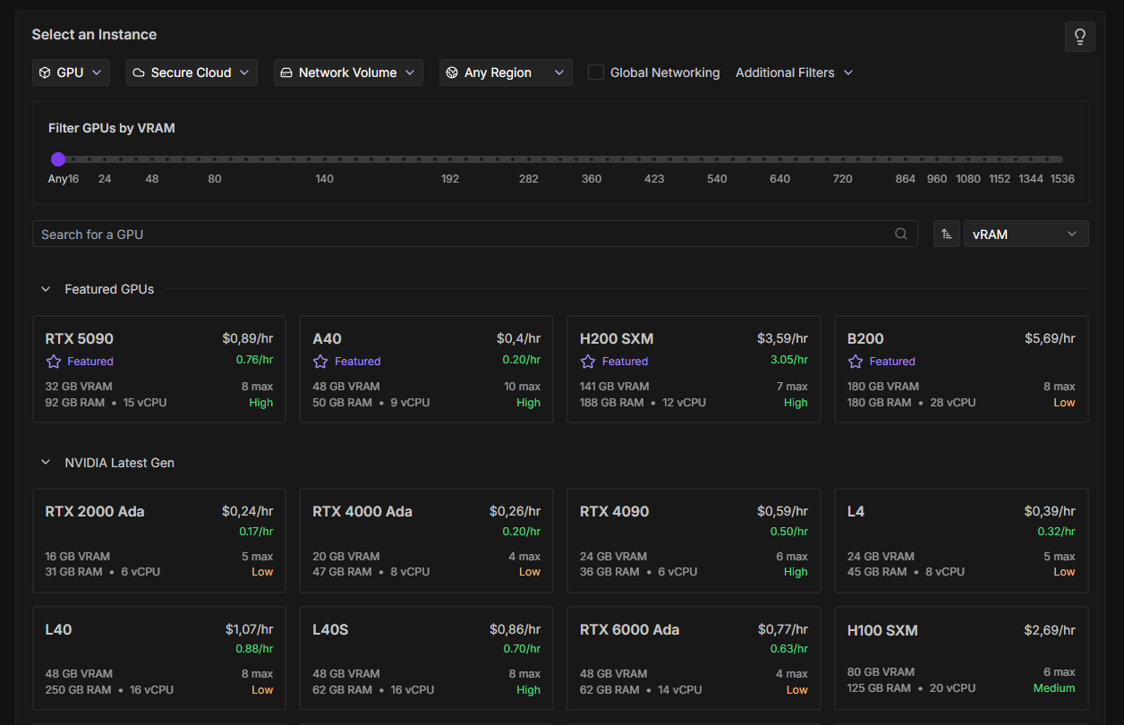 Higher VRAM GPUs cost more per hour but can handle larger batches and more complex workflows. Match your GPU to your specific needs to optimize costs!