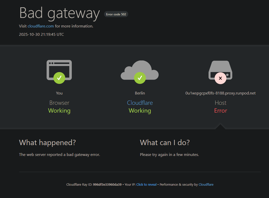 - Be patient: This can take some time due to RunPod's high GPU power but lower CPU/network performance